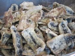 秋と言えば「さんま!」さんまの開きに片栗粉を付けて揚げていきます。