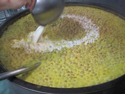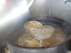 朝から、とった出汁をもう一度細かい粉を漉しながらお釜に加えてくれています。