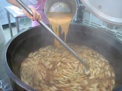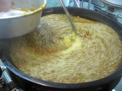 やっと出来上がり、大きなたらいの重さを計り、一人分の重さを出します。