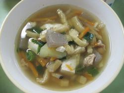 Sくんのメニューは空心菜を使った千葉のキャベツや長ねぎを入れた大きな水餃子のスープでした。