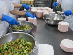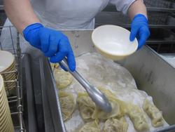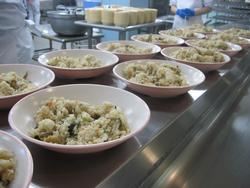 そして、麺を茹でて盛り付けです。本当に調理師さんたちが、次から次にどんどん仕事を進めてくれています。