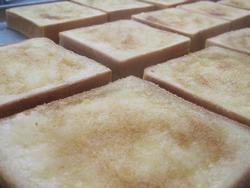 もう少し大きな角切りで作っていたのですがトッピングしたさつま芋が沈まないようにちょっと小さく切ってもらいました。