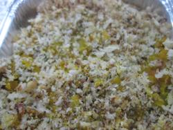 かぼちゃは荒く潰して「ほくごろ」感を出してもらいました。そして、パン粉には、オリーブオイルと粉チーズとパセリを混ぜて、ちょっとしっとりさせました。