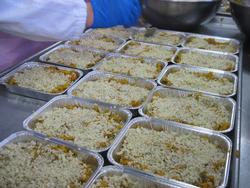 給食の時間になり、配食が始まりました。