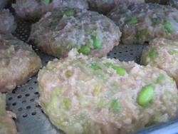 Nくんは鶏ひき肉とたっぷりのキャベツと枝豆を使ってメンチカツを考えてくれました。