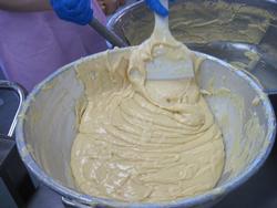 いつものケーキの生地に見えますが、この中にさつま芋のペーストが入っています。