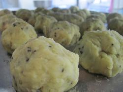 9時半過ぎには蒸して潰し終えたさつま芋の生地があり、1個だけ味見様に揚げてくれていました。