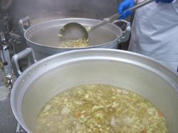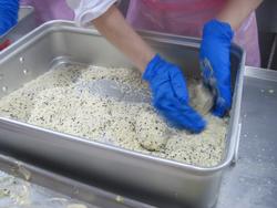 いつもは、笑顔が飛び交う給食室ですが、今日はあまりの忙しさにみんなの声もない・・・。写真を撮っている私が・・・ちょっとお邪魔な人です。