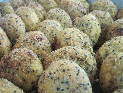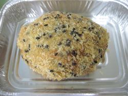 そして、黒ゴマを入れたパンを付けコロッケのように揚げました。何だか自然と香ばしさが出てくる料理です。