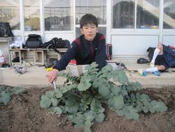 この大根は8月に種を蒔いて1月に収穫し、1月24日~30日の給食週間に鹿児島県メニューとして桜島の桜島大根と一緒に給食に登場します。そして、一番大きな桜島大根は、1月に行われる「世界一桜島大根コンテスト」にも出品します。今年は、Mくんの21kgにもなるレックスラディッシュを送り、見事学校部門で、「優勝」をいただきました。初めての優勝!本当に嬉しかったです。