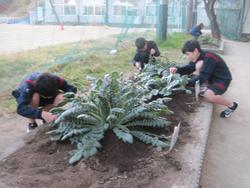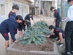 小金南中で桜島大根を育てています。メンバーは2年生9人のSAKURAメンバーズ です。