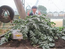 この大根は8月に種を蒔いて1月に収穫し、1月24日~30日の給食週間に鹿児島県メニューとして桜島の桜島大根と一緒に給食に登場します。そして、一番大きな桜島大根は、1月に行われる「世界一桜島大根コンテスト」にも出品します。今年は、Mくんの21kgにもなるレックスラディッシュを送り、見事学校部門で、「優勝」をいただきました。初めての優勝!本当に嬉しかったです。