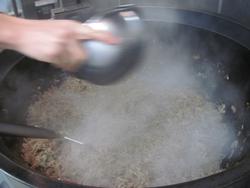 すでに仕事モード全開で給食を作っていました。