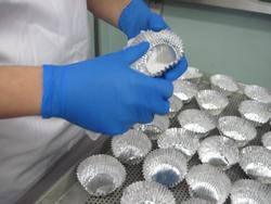 これはピリ辛炒めを入れるアルミケースです。間に薄い紙が入っているので全部外しながら並べてくれています。