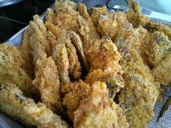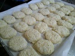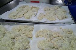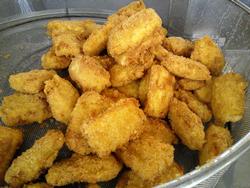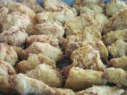 イカフライはクッキングシートの上に並べて揚げています。