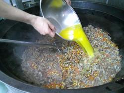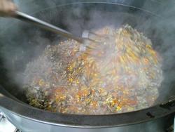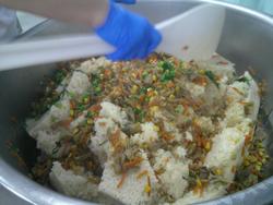 コーンやにんじんなどの具材を炒めて・・・