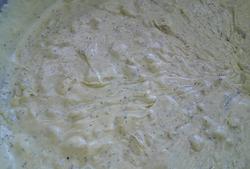 ジャガイモの上にソースをかけます。