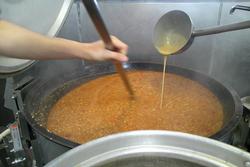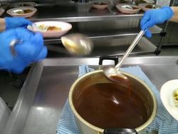 でも、お鍋の底の方に沈んでしまうので、カウンター越しに注ぐ調理師さんは1回1回底から混ぜるのでとても大変なんだそうです。