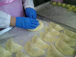 その具材を大判のぎょうざの皮で包みます。