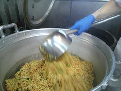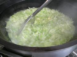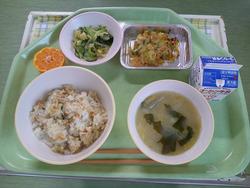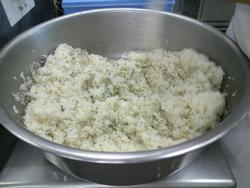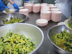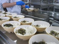 じゃこ菜ご飯は、炊き上がったご飯にじゃこと青菜を混ぜ合わせて作っています。『大盛りくださ~い」みんなよく食べていました。