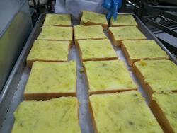 スィートポテトトーストは1枚1枚調理員さんが手作りしたものです。さつまいもを蒸してつぶし、牛乳と砂糖と加えました。スィートポテトを食パンに乗せてオーブンで焼きます。スィートポテトトーストは程よい甘さでボリュームもありました。おうちでも作ってみてください。
