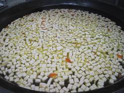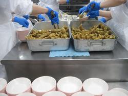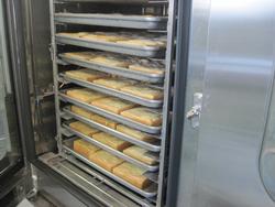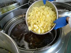 じゃが芋は皮を剥いて切り、スチームコンベクションオーブンで蒸して作ります。