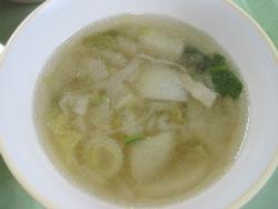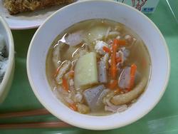 飲むとちょっとプツプツした食感の具だくさん汁です。
