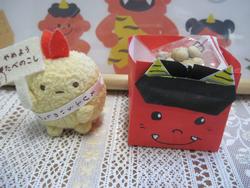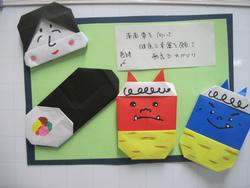 鬼の折り紙と恵方巻は、元、保育士さんの用務員さん(Sさん)が作って下さった物です。