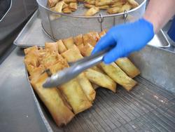 中はポテトサラダ、ありそうでなかったメニューです。パリパリの皮の中に、しっとりポテトサラダが入った春巻きです。