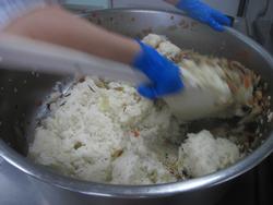 お休みだけで100人もいるため、今日は、お米を洗う時間を遅らせてもらい、10kg減らして研いでもらいました。