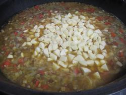 そこに、じゃが芋とトマトを投入。