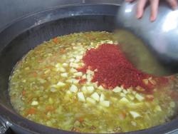 スープの全体の水分量も減らして調節です。
