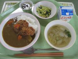 ちゃんぽん麺 ちくわのカレー揚げ 小松菜のなめたけ和え さつま芋入り黒糖蒸しパン 牛乳でした。
