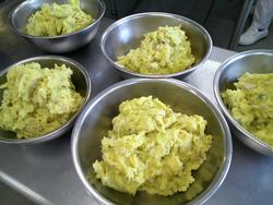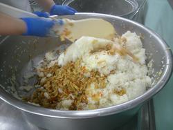 以前作った時には、調理師さんから「先生!片栗粉が固まってコンクリートみたいになってます!」