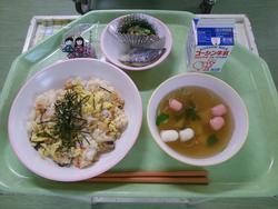 明日は公立高校の発表なので、3年生は給食がありません。なので、全学年揃っている今日を、ひな祭りメニューにしました。