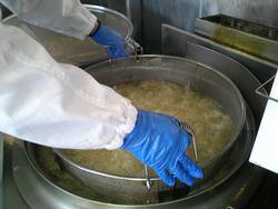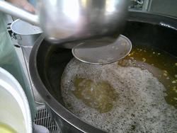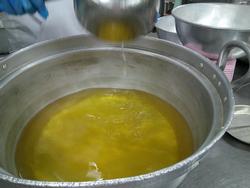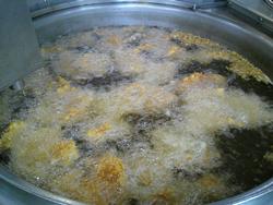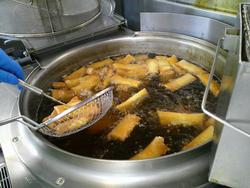 3年生最後のきな粉の揚げパンです。210℃で21秒で揚げるので、パンを入れる前に準備が必要です。