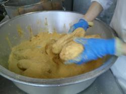 今日も、ちょっと大変ですが、何回にも分けて衣を付けてくれました。