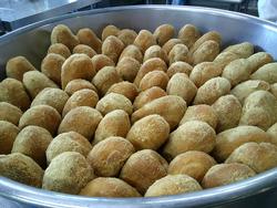 こうして揚げると、外はパリパリ、中は本当にふわふわの揚げパンが出来上がります。