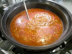 「ホワイトルーだったら、120~130℃で小麦粉とバターの水分が飛んでいくんですが、カレーのルーだと140℃位まで炒めないとだめなんです。
