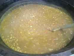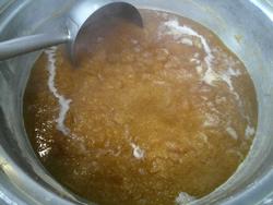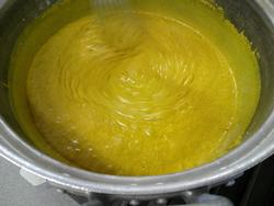 しばらくして、見に行くと同じ状態で、ずっと底が焦げないように混ぜてくれています。とろみが出てきたルーは、ちょっとでも離れると底が焦げてしまいます。離れられません。