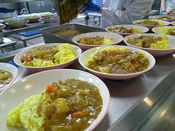 給食の時間になり、みんな見本を見て「やった~!!カレーじゃん!」「美味しそう!」カレーの時は、反応もすごくいいんです。