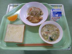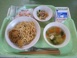 「あ!食べましたよ!ほら、パスタとチキン」「Sくん、最後なのに・・食べなかったの?」「ちょっとは食べましたよ。これでも頑張ったんですよ!」(確かにいつもよりは食べていました。ここ数日、3年生は完食して感謝を伝えよう。とクラスで頑張っていたそうです。)