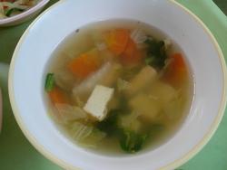 そして、チキンのスープに大根のサラダ、そして、アレルギーがある人も食べられるデザート乳・卵・小麦を使っていないクレープです。
