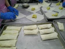 さつま芋のデザート春巻きです。これも、高校2年生のM先輩が考えた南中メニューです。