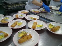 今日は、盛り付けるものがいっぱいでしたが、いつものように調理師さんたち、本当に早い!