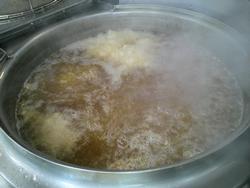 お鍋4つ分のうどんのつゆが出来上がりました。熱々です。