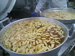 給食作りための大きなお釜は殆どが鉄でできています。鉄のお釜で蓮根に火を通すと化学反応でビックリするほど、真っ黒になってしまうことがよくあります。
