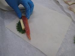 春巻きの中は鮭とチーズとシソです。一本ずつ綺麗に包んでくれました。