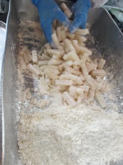 5~10gの肉やベーコンを毎日使っているため、大きな(給食では大きな・・になります)切り身はなかなか使えないんです。