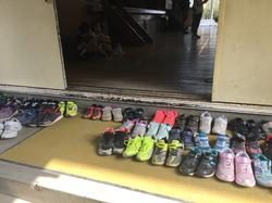 体育館に入る時、きちんと靴を揃えていました。素敵ですね。ヴィラせせらぎにいっても、スリッパを揃えるなどの、マナーもきちんと守れるんだなと思いました。がんばれ~。